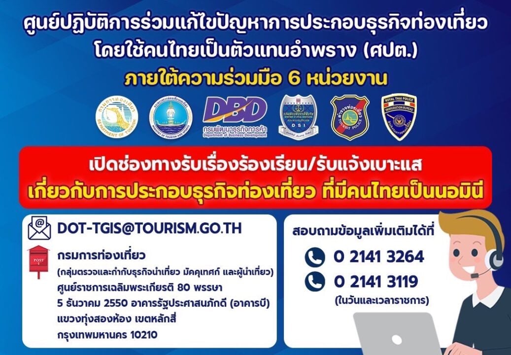 'เสริมศักดิ์' สั่งกรมการท่องเที่ยว และตำรวจท่องเที่ยว เร่งจัดการ 'ทัวร์ทุบตลาด' หากพบกระทำผิดให้จับกุมทันที ชี้ ยอมไม่ได้ทำลายภาพลักษณ์ประเทศไทย 'จาตุรนต์' ศปต. สั่งปิดบริษัทนอมินีแล้ว จำนวน 10 บริษัท