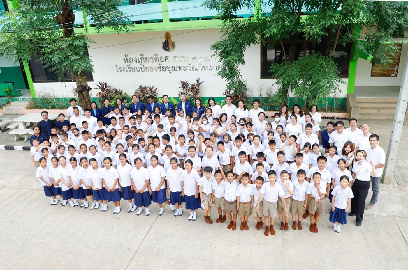 สำหรับใช้ไฟฟ้าในระบบปั๊มน้ำดูแลพื้นที่สีเขียว 25 ไร่และติดตั้งโซลาร์เซลล์ให้โรงเรียนปักธงชัยชุณหะวัณวิทยาคารจังหวัดนครราชสีมา เพื่อลดค่าไฟภายในโรงเรียน รวมกำลังการผลิตติดตั้งทั้งสองโรงเรียนเข้าถึงไฟฟ้าพลังงานหมุนเวียน18,700 วัตต์ เทียบเท่าการหลีกเลี่ยงการปล่อยก๊าซเรือนกระจกได้ถึง 13,721 กิโลกรัมคาร์บอนไดออกไซด์เทียบเท่าต่อปี(เทียบเท่าการปลูกต้นไม้เพื่อดูดซับคาร์บอนถึง 1,444 ต้น) นอกจากนี้ได้ร่วมเป็นส่วนหนึ่งให้โรงเรียนจัดตั้งกองทุนพลังงานหมุนเวียนโรงเรียนละ 1 กองทุน เพื่อให้เยาวชน คุณครู รวมถึงชุมชนรอบโรงเรียนมีทุนและมีส่วนร่วมในการดูแลรักษาอุปกรณ์และแผงโซลาร์เซลล์ โดยมีผู้เชี่ยวชาญวิศวกรรมของบริษัทลงพื้นที่ไปสอนวิธีการใช้งานที่ถูกต้องเพื่อประสิทธิภาพการใช้งานในระยะยาว”