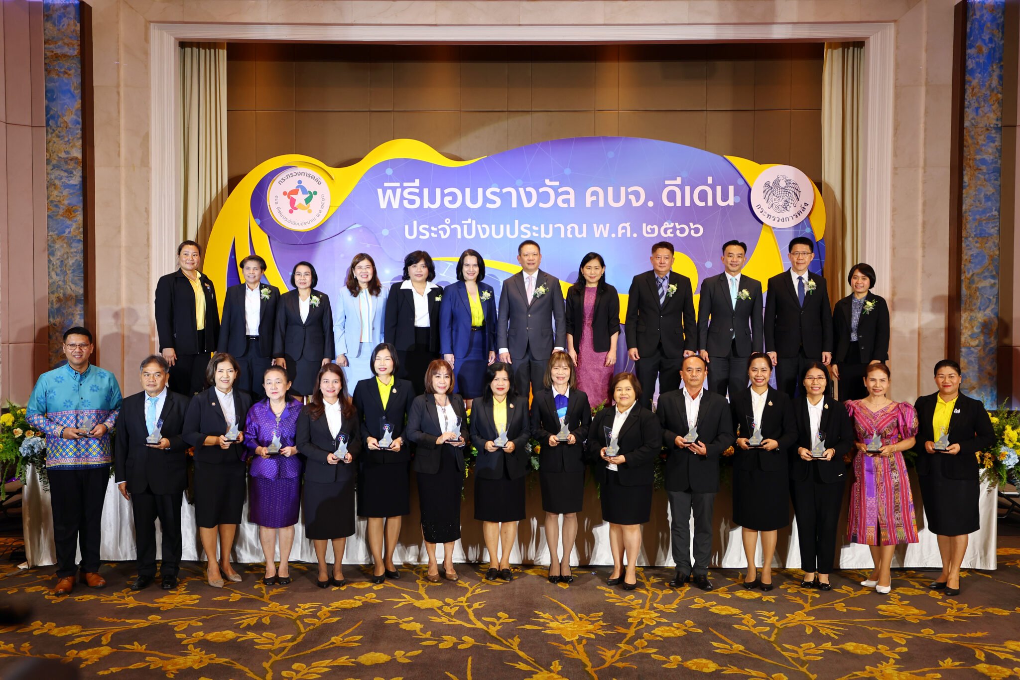 จากผลการดำเนินงานตามเกณฑ์การพิจารณา คบจ. ดีเด่น ได้แสดงให้เห็นว่า คบจ. สามารถดำเนินภารกิจตามนโยบายรัฐบาลและกระทรวงการคลัง ให้บรรลุตามวัตถุประสงค์ได้อย่างมีประสิทธิภาพ จึงเห็นควรมอบรางวัลเพื่อเป็นการเชิดชูเกียรติและขวัญกำลังใจแก่ คบจ. ที่มีผลการดำเนินงาน ผ่านเกณฑ์การประเมิน คบจ. ดีเด่น ประจำปีงบประมาณ พ.ศ. 2566 จำนวน 25 จังหวัด แบ่งเป็น รางวัลที่ 1 – 10 จำนวน 15 รางวัล ได้แก่ รางวัลที่ 1 คบจ. อำนาจเจริญ รางวัลที่ 2 คบจ. สมุทรสาคร รางวัลที่ 3 คบจ. สมุทรสงคราม รางวัลที่ 4 คบจ. มุกดาหาร รางวัลที่ 5 คบจ. ยะลา รางวัลที่ 6 – 10 คบจ. หนองคาย กำแพงเพชร อุดรธานี แม่ฮ่องสอน กระบี่ กาฬสินธุ์ บุรีรัมย์ นครราชสีมา ขอนแก่น และสกลนคร และรางวัลพิเศษเฉพาะด้าน จำนวน 10 รางวัล ได้แก่ คบจ. สุโขทัย ลำพูน ตราด ราชบุรี อุทัยธานี อ่างทอง อุบลราชธานี ประจวบคีรีขันธ์ ปัตตานี และแพร่” อธิบดีกรมบัญชีกลาง กล่าว