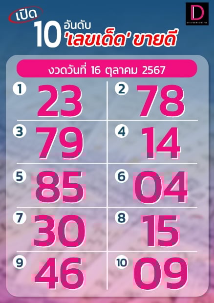 เปิด 10 เลขเด็ดมาแรงงวด 16 ต.ค. 67 ลุ้นรับทรัพย์รวยก้อนโต เผย เลขดัง 423 มาแรงสุดใบ 200 ชุด 5 ใบ 2,000 บาท