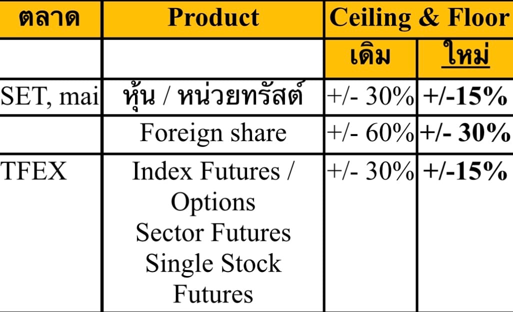 1. ปรับ Ceiling & Floorสำหรับทั้ง SET,mai และTFEX*