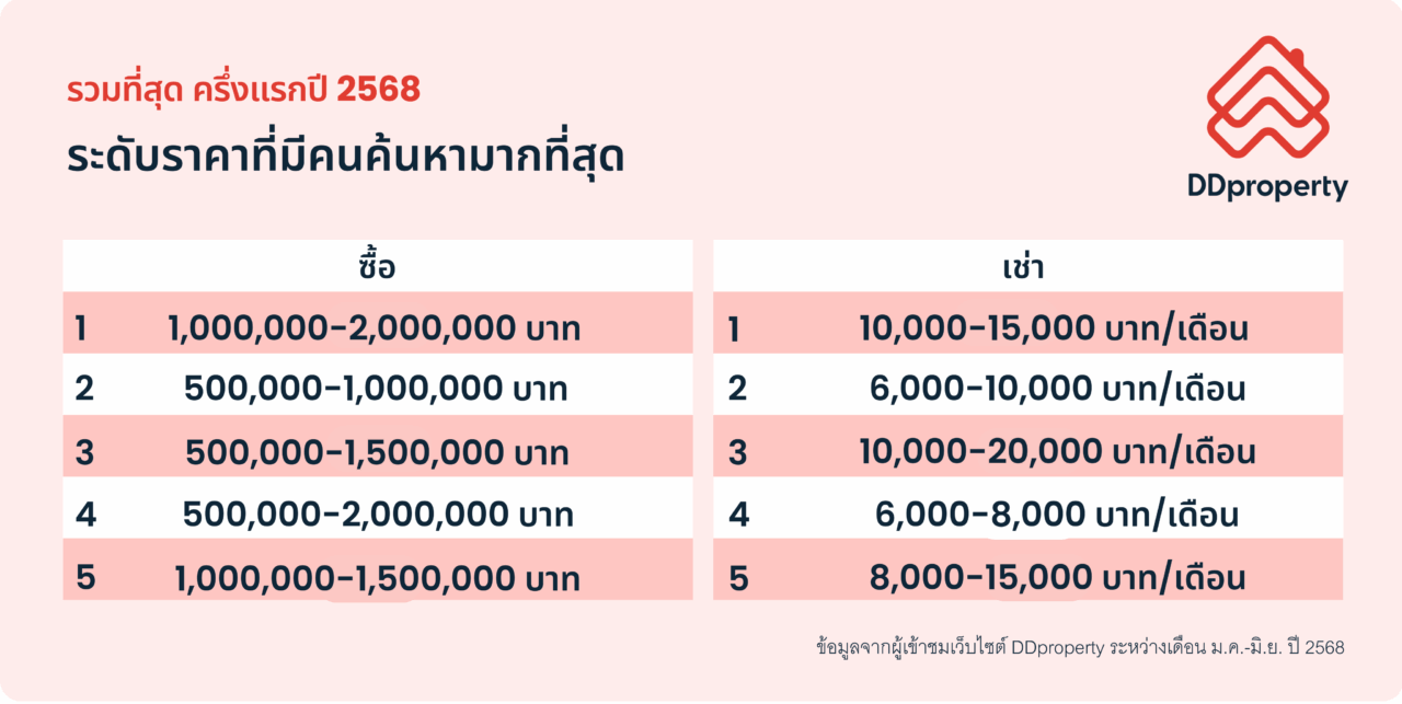 ระดับราคาที่อยู่อาศัยที่ชาวไทยสนใจซื้อมากที่สุดในช่วงครึ่งแรกของปี 2568 ได้แก่