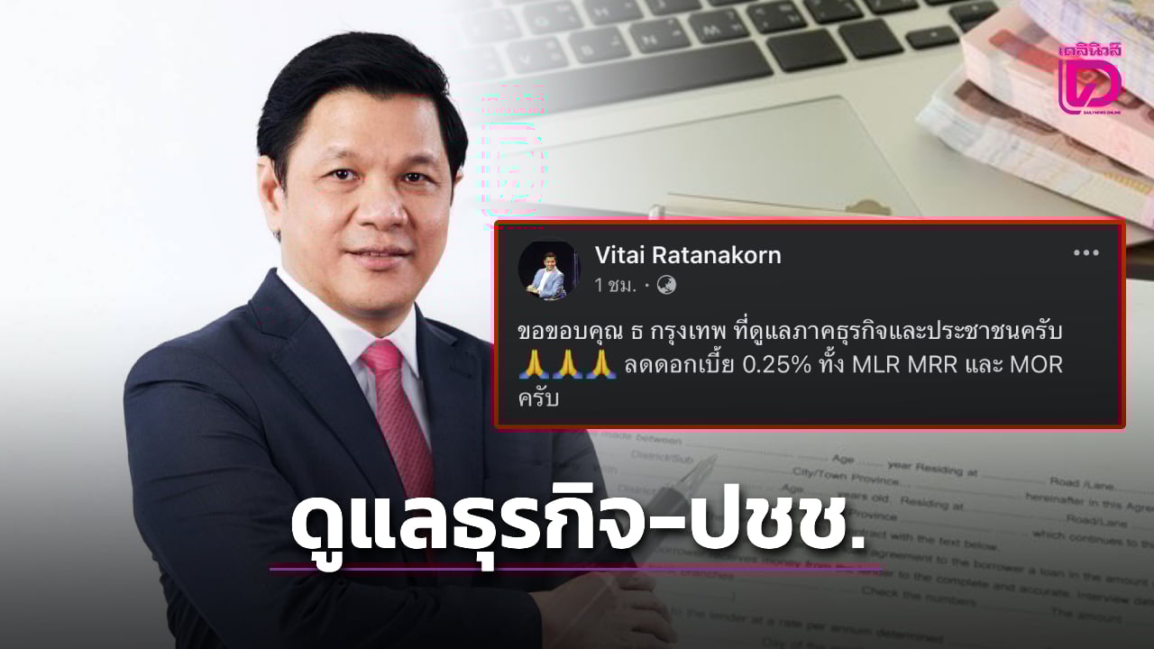 ขณะเดียวกัน นายวิทัย รัตนากร ว่าที่ ผู้ว่าการธปท. ซึ่งจะเริ่มรับตำแหน่งอย่างเป็นทางการในวันที่ 1 ตุลาคม 2568 นี้ ได้โพสต์ผ่านเฟซบุ๊กส่วนตัว Vitai Ratanakorn กล่าวชื่นชมธนาคารกรุงเทพ ที่ได้ลดดอกเบี้ยเพื่อดูแลภาคธุรกิจและประชาชน