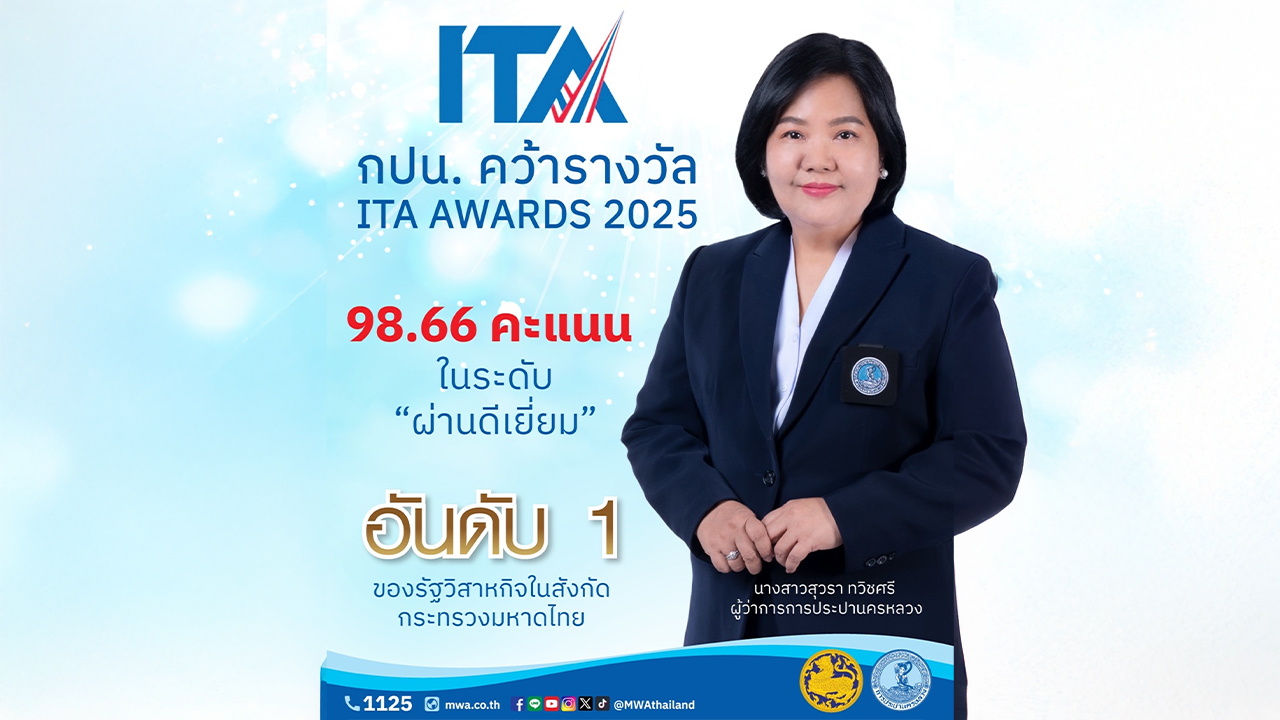 การประปานครหลวง (กปน.) คว้ารางวัล ITA AWARDS 2025 โดยได้รับผลการประเมินคุณธรรมและความโปร่งใสในการดำเนินงานของหน่วยงานภาครัฐ ประจำปีงบประมาณ พ.ศ. 2568 ในระดับ “ผ่านดีเยี่ยม” ด้วยคะแนน 98.66 คะแนน
