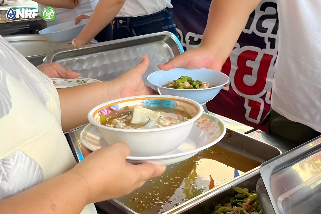 บรรยากาศภายในงานเต็มไปด้วยความคึกคักและอบอุ่น ตั้งแต่ช่วงเช้าที่ทีมงาน NRF และอาสาสมัครช่วยกันล้าง เตรียม และปรุงอาหารอย่างพิถีพิถัน เพื่อให้มั่นใจว่าอาหารที่จัดส่งถึงมือชุมชนจะมีทั้งคุณภาพ ความสะอาด และความปลอดภัย ขณะเดียวกัน ชาวชุมชนก็มารวมตัวกันเพื่อรับอาหารท่ามกลางรอยยิ้มและเสียงหัวเราะ โดยเฉพาะเด็ก ๆ ที่ได้มื้อกลางวันแสนอร่อย ซึ่งกลายเป็นหนึ่งในภาพความประทับใจของกิจกรรมในครั้งนี้