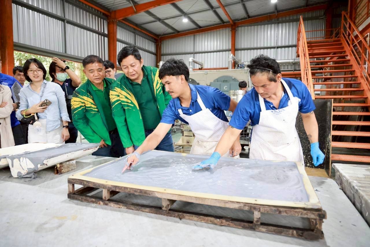 นายไพศาล หงษ์ทอง รองผู้จัดการ ธนาคารเพื่อการเกษตรและสหกรณ์การเกษตร (ธ.ก.ส.) ลงพื้นที่เยี่ยมชมการดำเนินงาน บริษัท สไมล์ รับเบอร์ จำกัด เกษตรกรลูกค้า ธ.ก.ส. หัวขบวน จังหวัดระยอง ภายใต้ “โครงการยกระดับสินค้าเกษตรสู่สินค้า Glam Agro” ซึ่งเริ่มต้นจากการรวมตัวกันของเกษตรกรผู้ปลูกยางพาราที่เล็งเห็นถึงปัญหาราคายางพาราผันผวนและกระทบต่อรายได้ทำให้หันมาจัดตั้งกลุ่มวิสาหกิจชุมชนบ้านเนินสว่างเพื่อรับซื้อผลผลิตยางพาราธรรมชาติจากเกษตรกรในพื้นที่มาแปรรูปเป็นผลิตภัณฑ์ต่างๆภายใต้แบรนด์Kaika (ไก่กา)อาทิหมอนยางพาราที่นอนและเบาะนั่งสมาธิที่มีจุดเด่นด้านความปลอดภัยต่อสุขภาพรองรับสรีระตามหลักการยศาสตร์ปราศจากสารเคมีที่ก่อให้เกิดภูมิแพ้และเป็นมิตรต่อสิ่งแวดล้อมจนกลายเป็นสินค้าที่ได้รับการยอมรับในตลาด