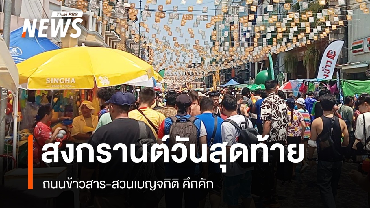สงกรานต์วันสุดท้าย ที่ สวนเบญจกิติ เริ่มแล้วตั้งแต่เวลา 11.00 น.ผู้จัดงานคาดวันนี้จะมีจำนวนนักท่องเที่ยวเดินทางเข้ามาร่วมงานจำนวนมาก ขณะที่ ถนนข้าวสารคึกคัก ท่ามกลางมาตรการรักษาความปลอดภัยอย่างเข้มงวด ด้านผู้ค้าปรับลดราคาะอุปกรณ์เล่นน้ำวันนี้ (15 เม.ย.2569) สำหรับวันสุดท้ายของการจัดงานสงกรานต์ระดับโลก หรือ มหาสงกรานต์ 2026 ณ สวนเบญจกิติ กรุงเทพมหานคร  ซึ่งวันนี้คาดการณ์ว่าจะมีนักท่องเที่ยวเดินทางเข้าพื้นที่จำนวนมาก เนื่องจากเป็นวันสุดท้ายของการจัดงาน ขณะที่กิจกรรมภายในงานอัดแน่นไปด้วยความสนุก  ทั้งโซนเล่นน้ำ โซนอาหาร และโซนเวทีคอนเสิร์ต