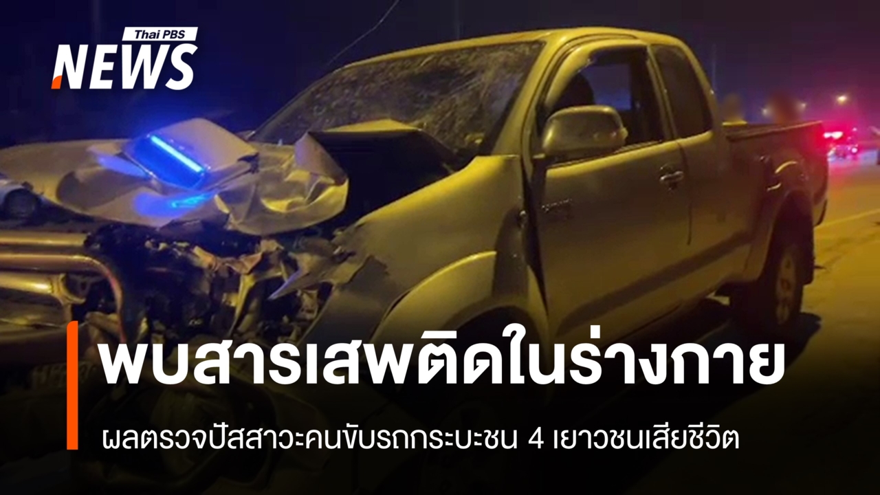 ผลตรวจปัสสาวะผู้ก่อเหตุขับรถกระบะชนเยาวชนชายเสียชีวิต 4 คนที่ จ.เลย พบสารแอมเฟตามีนในร่างกาย ขณะที่ผู้ปกครองเรียกร้องให้ลงโทษข้อหาหนักวันนี้ (15 เม.ย.2569) ความคืบหน้ากรณีเด็กชาย 4 คน ถูกรถกระบะพุ่งข้ามเลนชน บนถนนเลย-เชียงคาน บริเวณทางโค้งบ้านนาบอน ต.นาซ่าว อ.เชียงคาน จ.เลย ขณะขับรถจักรยานยนต์ซ้อน 4 กลับบ้านพัก ซึ่งเหตุเกิดในช่วงกลางคืนวันที่ 13 เม.ย.ที่ผ่านมา